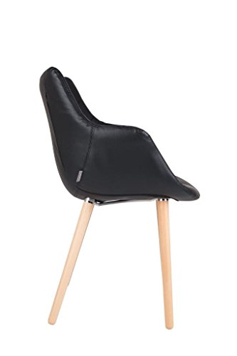Mit diesem Polsterstuhl im schwarzem Lederlook setzen Sie neue Akzente in Ihrem Essbereich. Er passt als Einzelstück oder in der Gruppe prima zu puristischen Glas- wie auch derben Holztischen. Das Design des TWELVE Black stammt vom holländischen Livestyleunternehmen Zuiver, das bekannt ist für seine ausgefallenen und modernen Einrichtungsgegenstände. Unter dem schwarzem und strapazierfähigen Kunstleder-Bezug steckt eine gepolsterte Kunststoff-Sitzschale mit Armlehnen. Die Stuhlbeine sind aus stabilem Buchenholz gefertigt. Maße: B/H/T 60 x 82 x 60 cm, Sitzhöhe 45 cm, Gewicht 7 kg, bis 140 kg belastbar, Bezug 100% PU-Leder, Schaumdichte 30, Höhe Armlehnen 65 cm. Ein würdiger Nachfolger des Stuhls Eleven von Zuiver.